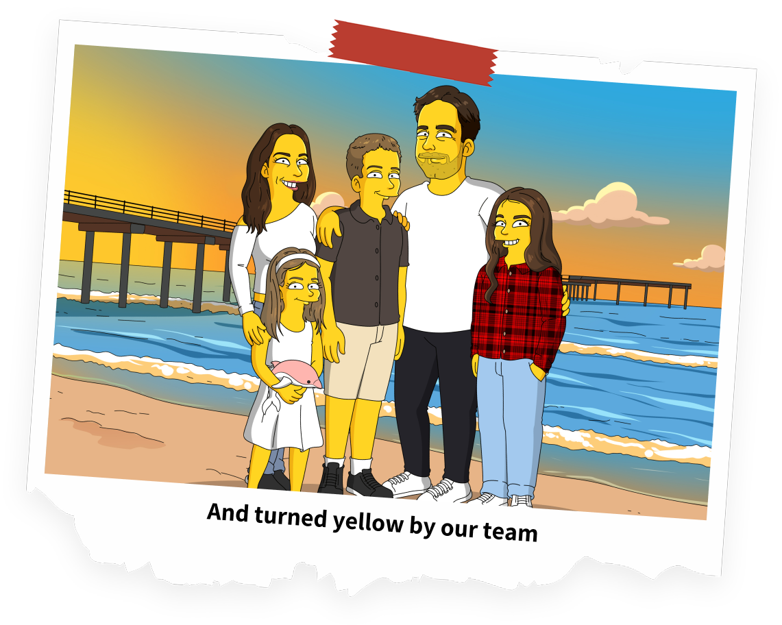 We’re a husband-and-wife team (and parents of three) behind Turned Yellow, a small family business that turns your favorite photos into hand-drawn yellow cartoon portraits.